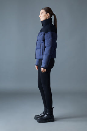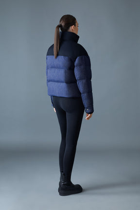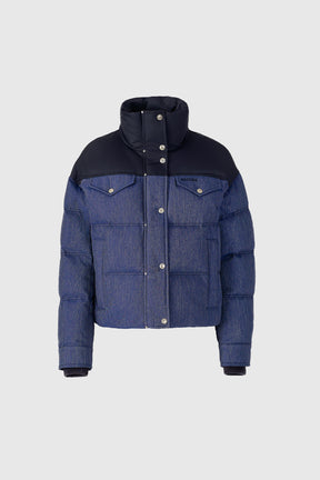 BRIGIT-DNM(브리짓-DNM)은 GRS 인증을 받은 리사이클 다운으로 제작된 자켓으로, 퍼포먼스 데님 쉘과 대비되는 새틴 요크가 특징입니다. 추운 날씨에 레이어링하기 적합하도록 설계되었으며, 앞지퍼 클로저와 스냅 플래킷, 조절 가능한 커프스, 겨드랑이 아일렛을 통해 통기성을 더했습니다. 여유로운 실루엣은 기능적인 보온성과 고급스러운 유틸리티 스타일을 균형 있게 담아낸 아이템입니다.