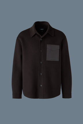 EMMANUEL(엠마누엘)은 더블 페이스 울 소재로 제작된 릴랙스 핏 오버셔츠입니다. 컨버터블 칼라와 프런트 버튼 클로저로 다양한 스타일링이 가능하며, 혼 버튼과 로고가 새겨진 가죽 패치 포켓이 세련된 포인트를 더합니다. 편안한 실루엣 속에 고급스러운 디테일을 갖춘 아이템으로, 일상에서 쉽게 매치할 수 있는 프리미엄 웨어러블 셔츠입니다.