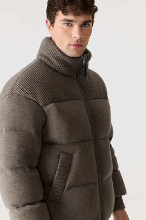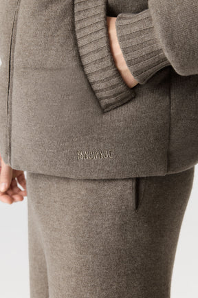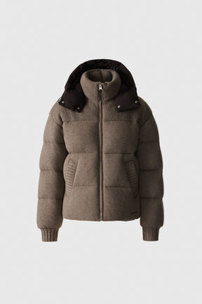 - 겉감: (몸판, 소매. 니트): 65% 울, 35% 캐시미어.콤보 겉감 1: (후드.덩어리): 82% 폴리아미드/나일론, 18% 엘라스테인/스판 주조.안감: (몸판 둘레, 소매. 원산지): 82% 폴리아미드/나일론, 18% 엘라스테인/스판덱스.충전재: (몸판 둘레, 뒤, 소매 내부. 다운): 90% 화이트 덕다운 (페킨 오리, Anas platyrhynchos Domesticus). (사육), 10% 코끼리 커넥터.