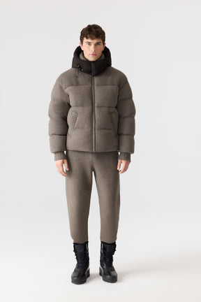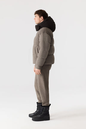 GRIFFEN(그리핀)은 정통 멕시코미어 울 혼방 소재로 제작된 다운 재킷으로, 리브 라이닝이 전체적으로 디자인이 특징입니다. 환절기에 적합하도록 변환, 대비되는 후드와 스톰 바이저가 탈부착 가능해 스타일링이 가능합니다. 겨드랑이 벤틸레이션으로 통기성이 더 뛰어나고 조절 가능한 번지 기능을 갖추고 있어 휴대성이 뛰어난 지퍼 포켓이 실용성을 강화합니다. 중립적인 느낌으로 세련된 따뜻함과 현대적인 믹스드 미디어 스타일을 조화롭게 끌어낸 아이템입니다.