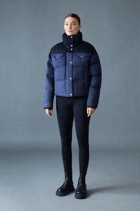 BRIGIT-DNM(브리짓-DNM)은 GRS 인증을 받은 리사이클 다운으로 제작된 자켓으로, 퍼포먼스 데님 쉘과 대비되는 새틴 요크가 특징입니다. 추운 날씨에 레이어링하기 적합하도록 설계되었으며, 앞지퍼 클로저와 스냅 플래킷, 조절 가능한 커프스, 겨드랑이 아일렛을 통해 통기성을 더했습니다. 여유로운 실루엣은 기능적인 보온성과 고급스러운 유틸리티 스타일을 균형 있게 담아낸 아이템입니다.