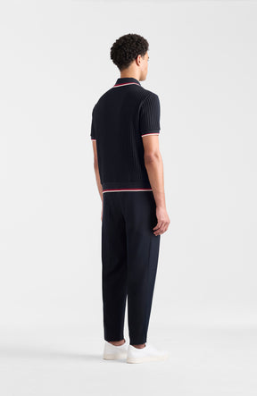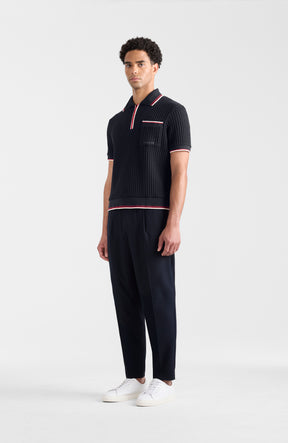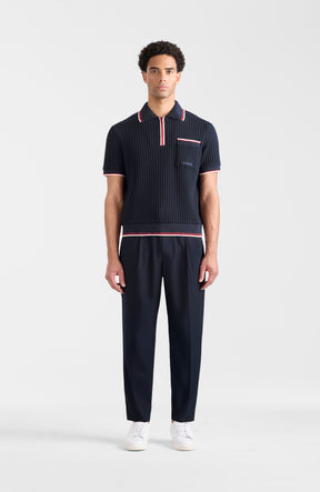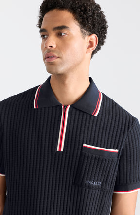 ESTABAN(에스타반)은 100% 코튼 크로셰 니트 소재로 제작된 숏 슬리브 폴로 셔츠. 센터 프론트 쿼터 지퍼 클로저를 적용해 간결한 인상을 더하며, 가슴 패치 포켓에는 MACKAGE 자수 디테일을 더했습니다. 여름 시즌 캐주얼 레이어링에 적합한 아이템.