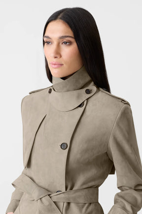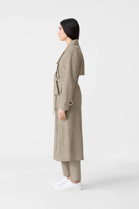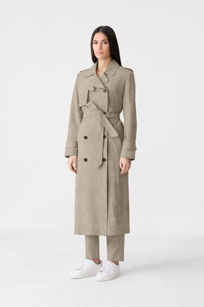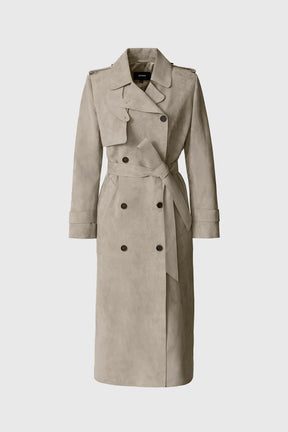 - 맥시 기장의 스웨이드 트렌치 코트