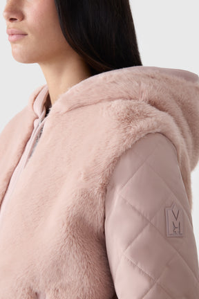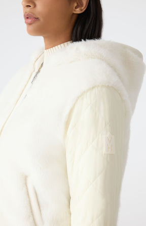GWENDAL(그웬달)은 양면 착용이 가능한 디자인의 릴랙스 핏 후디입니다. 한쪽 면은 다이아몬드 퀼팅 슬리브로 구성되어 있으며, 반대쪽은 브랜드 로고가 더해진 플리스 소재로 마감되어 깔끔한 룩을 연출합니다. 전면 지퍼 클로저, 리브 니트 트리밍, 캥거루 포켓으로 실용성과 편안함을 더했으며, 페이크 퍼와 혼합 소재 디테일이 질감의 포인트를 완성합니다. 보온성과 활용도를 모두 갖춘 시그니처 아이템입니다.