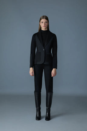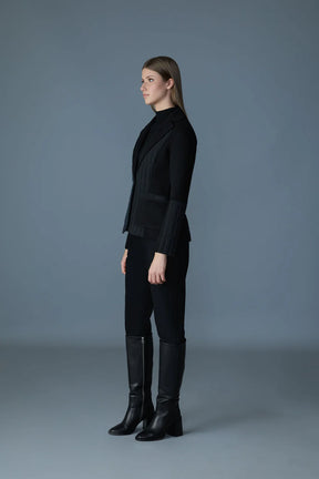 LEILANI(레일라니)는 더블 페이스 울 소재에 GRS 인증 리사이클 다운 충전재를 더해 완성한 테일러드 자켓입니다. 슬림한 실루엣에 세로 퀼팅 디테일이 구조적인 라인을 강조하며, 버튼 여밈과 테일러드 칼라가 정제된 무드를 더합니다. 패치 포켓과 버튼 디테일 소매 탭, 허리 뒷부분의 엘라스틱 밴드가 편안한 착용감을 제공합니다. 뒷중심의 벤트로 활동성을 높였으며, 부분 안감 처리로 보온성까지 강화했습니다. 가벼운 착용감과 세련된 디자인을 모두 갖춘 현대적인 아우터입니다.