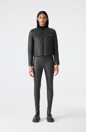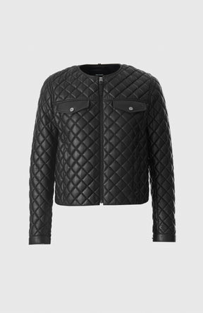 LENA(레나)는 다이아몬드 퀼팅과 패딩 디테일이 특징인 크롭 기장의 가죽 자켓입니다. 스냅 클로저 가슴 포켓과 인심 포켓이 실용적인 수납 기능을 제공하며, 조절 가능한 스냅 커프와 전체 안감 처리가 편안한 착용감을 더합니다. 고급스러운 소재감이 돋보이는 세련된 레이어링 아이템입니다.