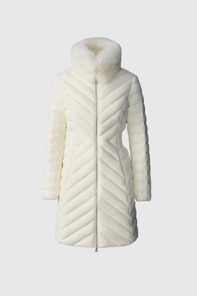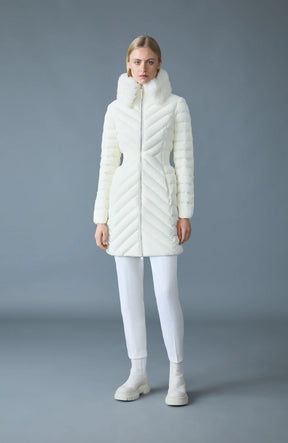 LYRIS(리리스)는 지속 가능한 리사이클 소재와 덕 다운으로 제작된 슬림 핏의 롱 다운 코트입니다. 헤링본 퀼팅과 스모킹 엘라스틱 패널이 실루엣을 정교하게 잡아주며, 탈착 가능한 시어링 칼라가 다양한 스타일 연출을 가능하게 합니다. 2-way 지퍼 클로저, 내부 지퍼 포켓, 파이핑 디테일이 더해져 편안함과 실용성을 동시에 갖췄으며, MACKAGE 실리콘 로고가 현대적인 무드를 완성합니다.