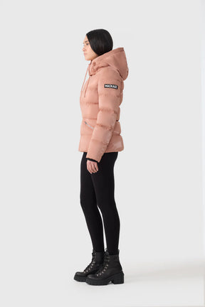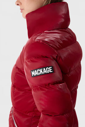 MADALYN-GLO(마다린-GLO)는 지속 가능한 소재로 제작된 하이글로스 다운 자켓으로, 혹한기를 고려해 설계된 퍼포먼스 스타일입니다. 탈착 가능한 후드와 조절 가능한 스톰 바이저가 포함되어 있으며, 리브 니트 커프, 보온 기능의 지퍼 포켓, 겨드랑이 통기용 아이렛으로 기능성을 높였습니다. 브랜드 드로스트링과 시그니처 MACKAGE 패치가 전체 룩을 마무리합니다.