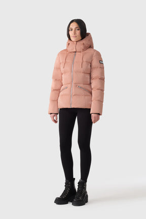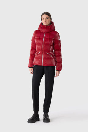 MADALYN-GLO(마다린-GLO)는 지속 가능한 소재로 제작된 하이글로스 다운 자켓으로, 혹한기를 고려해 설계된 퍼포먼스 스타일입니다. 탈착 가능한 후드와 조절 가능한 스톰 바이저가 포함되어 있으며, 리브 니트 커프, 보온 기능의 지퍼 포켓, 겨드랑이 통기용 아이렛으로 기능성을 높였습니다. 브랜드 드로스트링과 시그니처 MACKAGE 패치가 전체 룩을 마무리합니다.