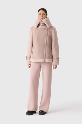 RHOSLYN(로슬린)은 전체가 포근한 시어링으로 제작된 오버사이즈 모토 자켓입니다. 비대칭 프론트 지퍼와 대담한 칼라 디테일이 강렬한 실루엣을 연출하며, 가죽 트리밍이 더해진 지퍼와 버클 장식이 고급스러운 마감을 보여줍니다. 안감 처리되지 않은 내피는 자연스러운 질감을 강조하며, 따뜻함과 감각적인 무드를 동시에 담아낸 아이템입니다.